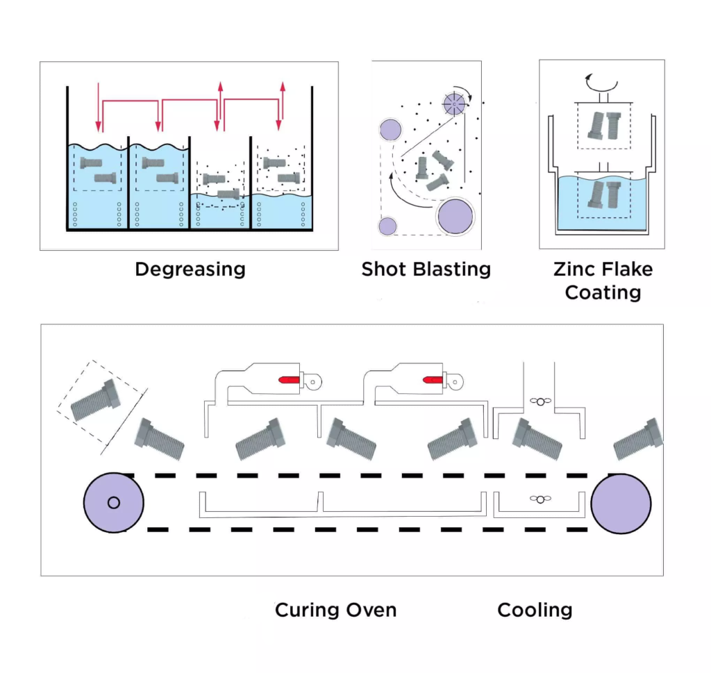 Zinc Flake Coating is a non-electrolytic, inorganic coating system composed of zinc and aluminum flakes bonded together by a special binder.